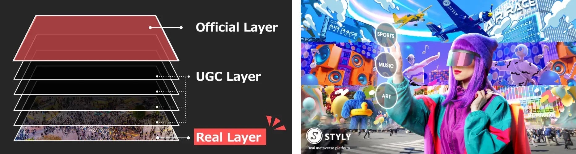 私たちは現実世界にXRを重ね合わせて拡張させる「リアルメタバース」を提唱し、STYLYというプラットフォームを介して各都市にあらゆる空間レイヤーを配置することで、空間をメディア化する取り組みを行ってきました。